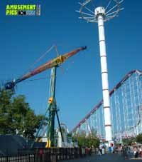 The portable Sky Scraper ride sat at the top of the Boardwalk, between Dino Island and Employee Dining \/