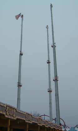 The newly completed towers of erUPtion stand waiting for the cables to be attached in Spring of 2003 \/