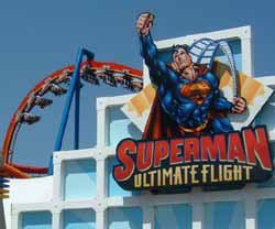 News & Events: Superman: Ultimate Flight made its debut in the Spring of 2003, as the first "flying" coaster in the Northeast.   Also, the S&S Power "Absolutely Insane" ride erUPtion was added to the park after more than a year long delay as the structure was re-engineered by the manufacturer.